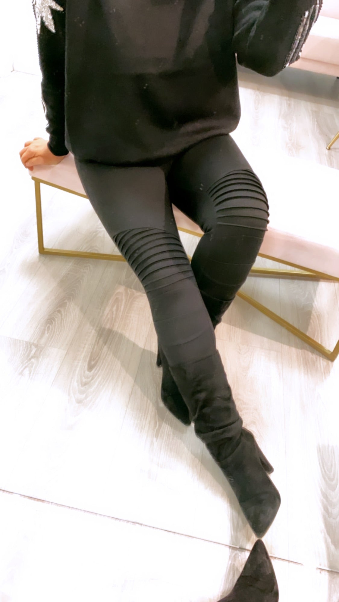 Jackie Spandex Moto Leggings Black